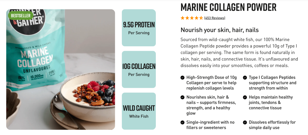 It is worth noting that the marine collagen is not MSC-certified (Marine Stewardship Council), which Ancient and Brave’s Wild Collagen does hold. Hunter and Gather describe their sourcing as sustainable but do not carry the formal third-party certification. That may matter to you if independent sustainability verification is a priority, or it may not if you are satisfied with their transparency on sourcing practices.